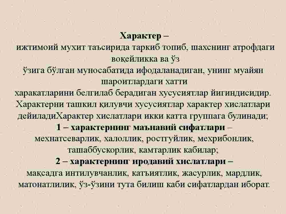 1. Xarakter haqida tushuncha