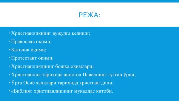 7. O’rta Osiyo xalqlari tarixida xristian dini;