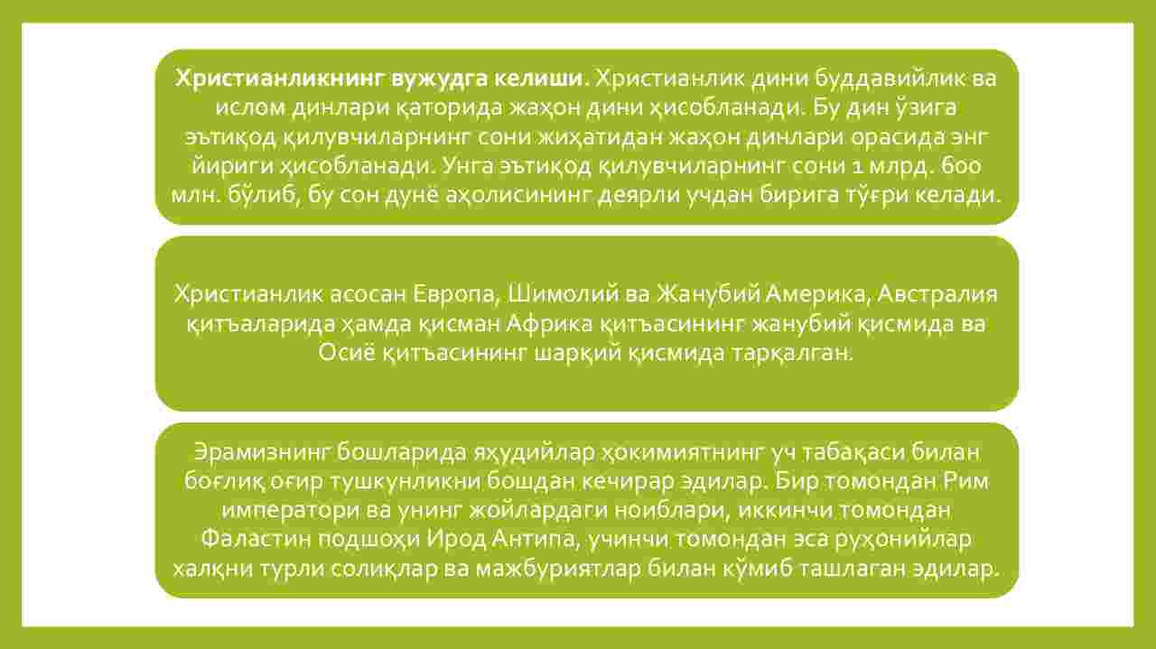 I . Xristianlikning vujudga kelishi;