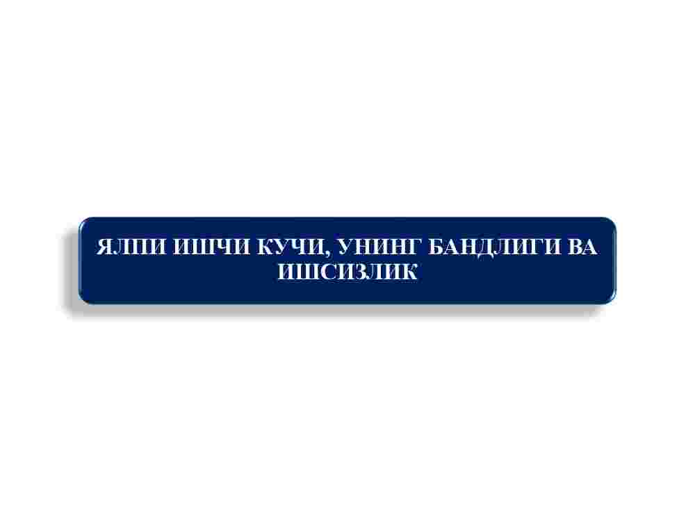 4. O’zbekistonda ishchi kuchi bandligini ta’minlash va ishsizlarni ijtimoiy himoyalash borasidagi davlat siyosatining asosiy yo’nalishlari.