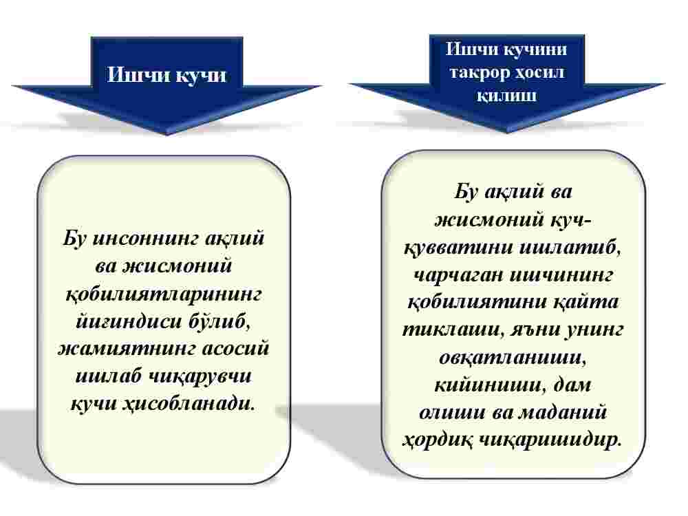 1. Ishchi kuchini takror hosil qilish va uning xususiyatlari.