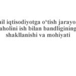1. Yashil iqtisodiyotga o‘tish jarayonida mehnat faoliyatini tashkil etishning mohiyati va asoslari.