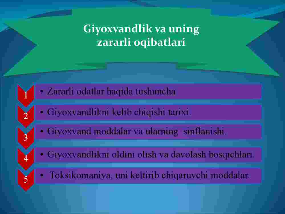 5. Toksikomaniya, uni keltirib chiqaruvchi moddalar.